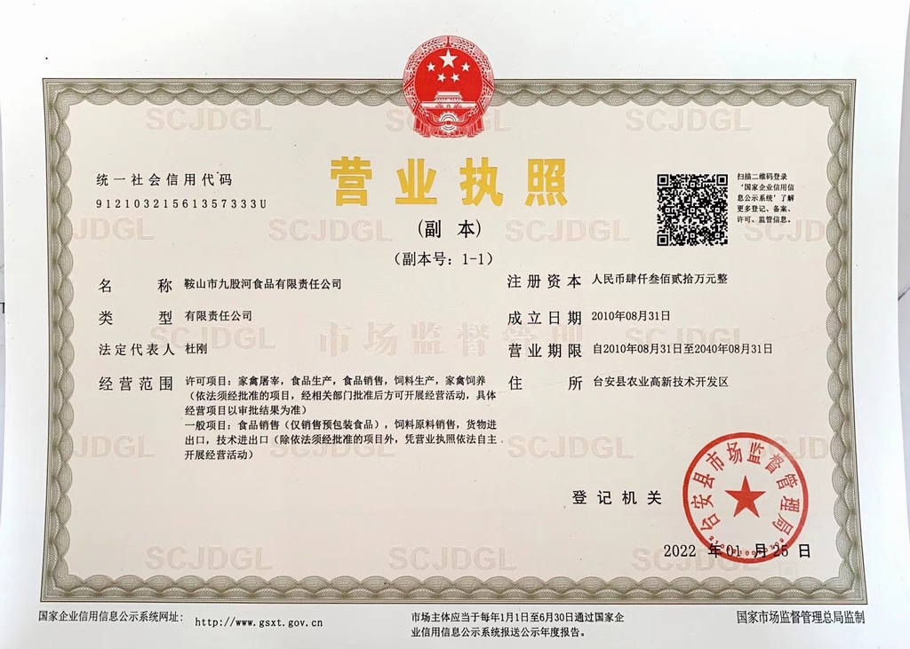 1997年丨九股河誕生于遼寧臺安,成立臺安縣九股河農(nóng)業(yè)發(fā)展有限公司2003年丨九股河走進錦州市,在凌海成立凌海九股河食品有限公司2008年丨成立凌海九股河飼料有限公司2010年丨九股河與禾豐合作后,成立鞍山市九股河食品有限責任公司,從此,禾豐九股河走進了高速發(fā)展之路2011年丨繼續(xù)在遼西闊步,成立葫蘆島九股河食品有限公司同年,臺安縣九股河農(nóng)業(yè)發(fā)展有限公司養(yǎng)殖部成立,按下規(guī)?;\養(yǎng)小區(qū)建設(shè)的快進鍵2